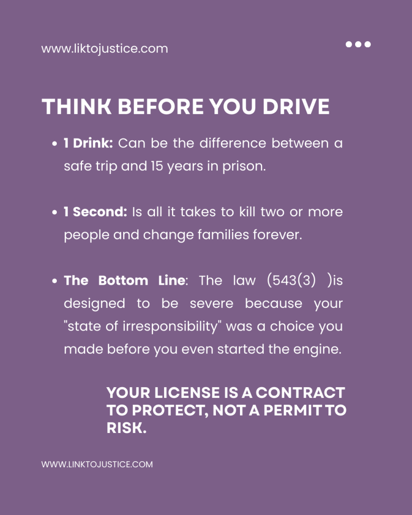 Every time we sit behind the wheel, we hold more than just a steering wheel — we hold lives. Drinking and driving is not simply a reckless choice; it is an act of negligence that can turn into homicide in a matter of seconds. The road is not a place for carelessness, and yet too often, tragedy strikes because caution was abandoned. Drivers must begin to see the responsibility of driving for what it truly is: a duty to protect themselves, their passengers, and everyone else sharing the road. Being cautious is not optional; it is the difference between life and death.